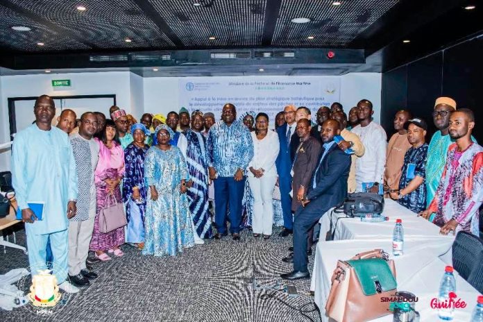 Cette rencontre sous le partenariat technique de l’Organisation des Nations Unies pour l’Alimentation et l’Agriculture (𝐅𝐀𝐎), était consacrée à la présentation, par le Bureau de Stratégie et de Développement (BSD) de l’état d’avancement de la mise en œuvre du Plan Stratégique Halieutique de Guinée (𝐏𝐒𝐇𝐆) 𝟐𝟎𝟐𝟑-𝟐𝟎𝟐𝟕, dans le cadre de la poursuite des travaux relatifs au 𝐓𝐂𝐏-𝐆𝐔𝐈/𝟑𝟗𝟎𝟕.